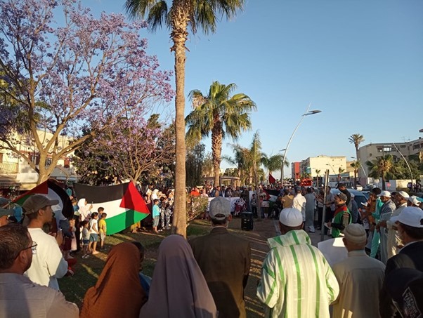 كما شهدت مدينة آسفي، وقفة حاشدة أمام مسجد أنس وسط المدينة، طالبت بالوقف الفوري للتطبيع مع الكيان الصهيوني، ورددت شعارات:” فلسطين أمانة والتطبيع خيانة، كلنا فدا لفلسطين الصامدة، لا استسلام لا تطبيع فلسطين ماشي للبيع.”