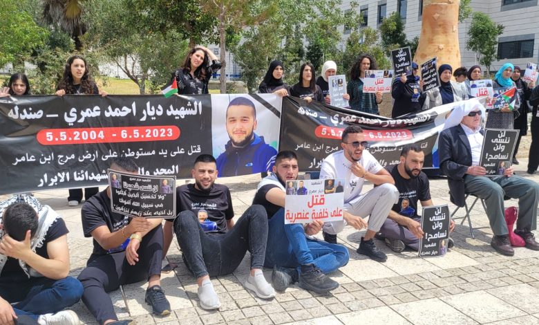 ونظمت عائلة الشهيد ديار العمري والعشرات من الأهالي وقفة احتجاجية غاضبة أمام مبنى المحكمة المركزية في الناصرة، اليوم، بالتزامن مع موعد بدء محاكمة القاتل.