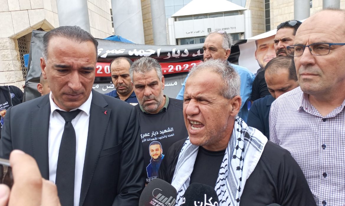 بالتزامن مع جلسة تمديد اعتقال القاتل.. عائلة الشهيد ديار عمري تنظّم وقفة احتجاجية أمام المحكمة