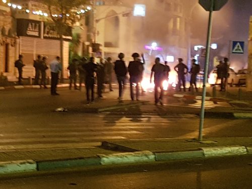 ومنعت الشرطة المتظاهرين من الوصول إلى مركز الشرطة وألقت عليهم قنابل الغاز والصوت ورشتهم بالمياه العادمة. بينما وأغلق الشبان أغلقوا شارع “ييفيت” في المدينة بالإطارات المشتعلة.