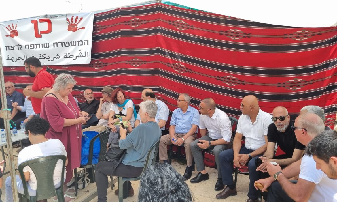 وشهدت الخيمة اليوم الثلاثاء، مداخلات لعدد من مندوبي الوفود، العربية واليهودية والأجنبية، وطالبوا الحكومة الإسرائيلية وجهازها الشرطي بالعمل الجاد من أجل مكافحة العنف والجريمة في المجتمع العربي.