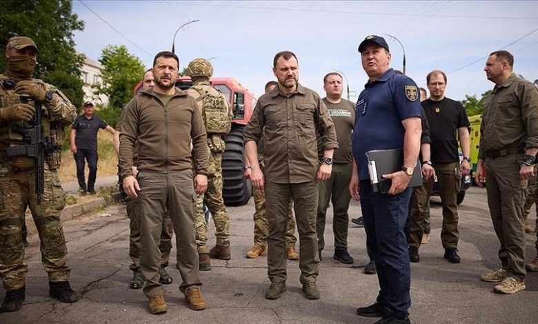 وصل الرئيس الأوكراني فولوديمير زيلينسكي، الخميس، إلى منطقة خيرسون المتضررة من الفيضانات لتقييم الاستجابة للأضرار الناجمة عن تفجير سد نوفا كاخوفكا.