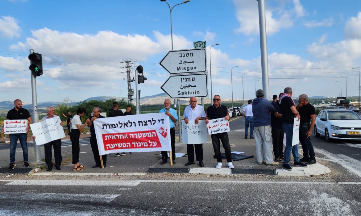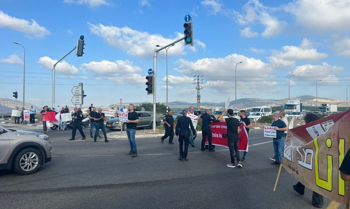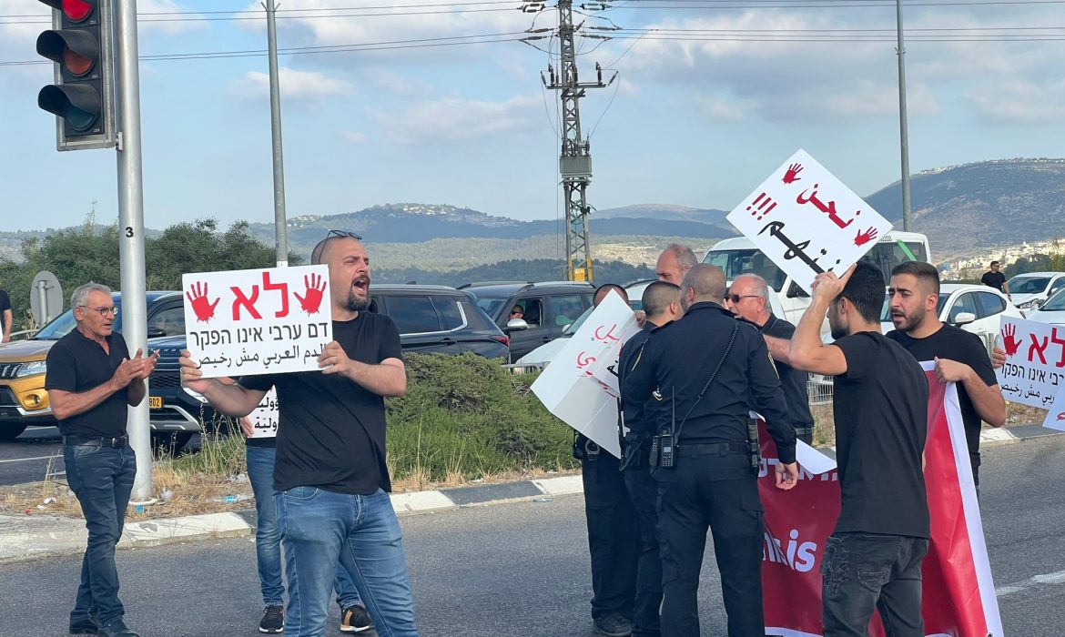 وأغلق المتظاهرون الشارع الرئيس، وعبّر المتظاهرون عن غضبهم بسبب استمرار العنف في المجتمع العربي، دون أن تضع الشرطة حدا لها.