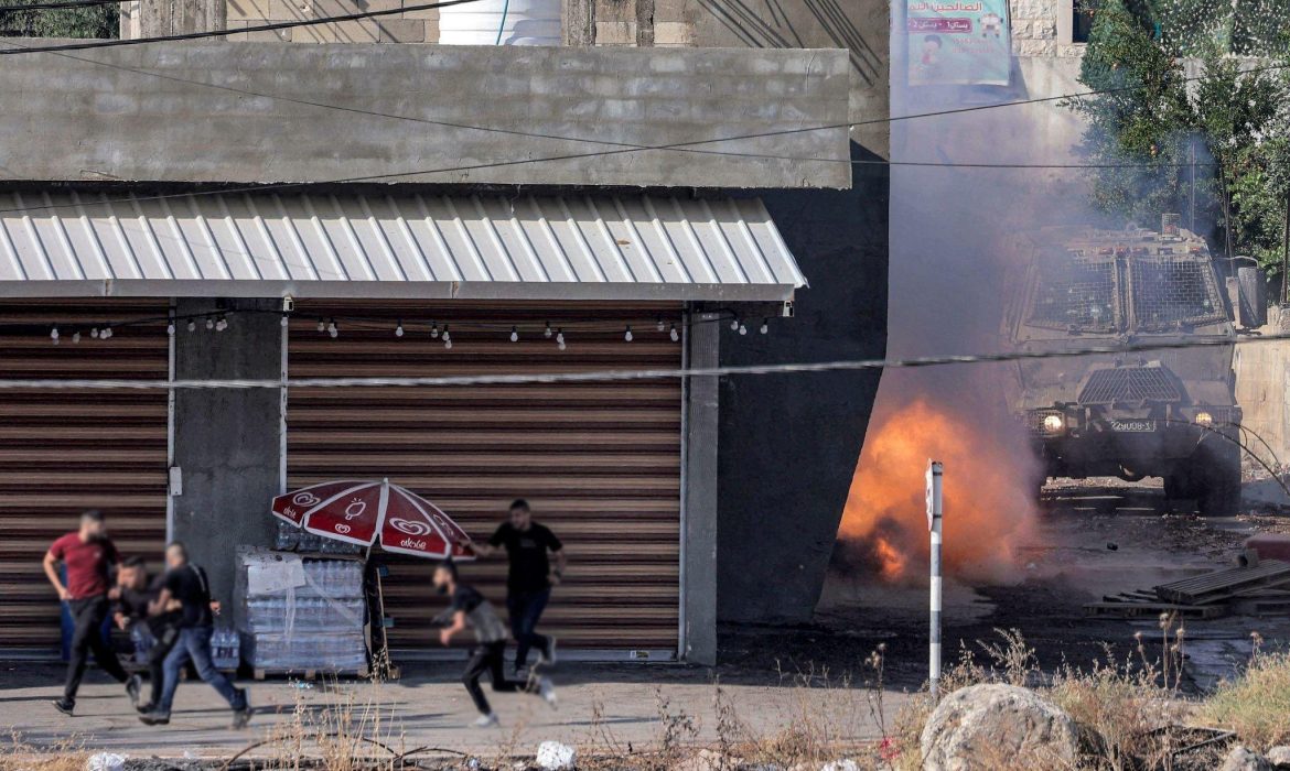 اشتعال جيب اسرائيلي بعد تفجير عبوة ناسفة خلال الاشتباكات في جنين.