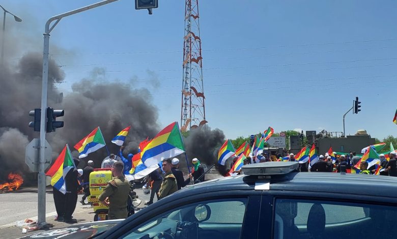 وتظاهر العشرات عند مفترق مدينة شفاعمو الجنوبي، اليوم الأربعاء، وأغلقوا الطرقات بالإطارات المطاطية المشتعلة، تضامنا مع الجولانيين وضد مصادرة الأرضي.