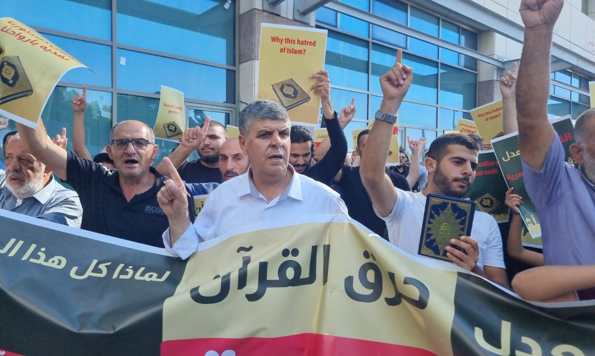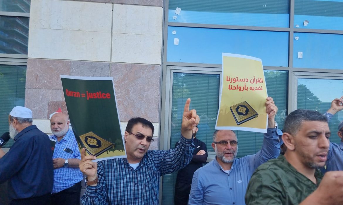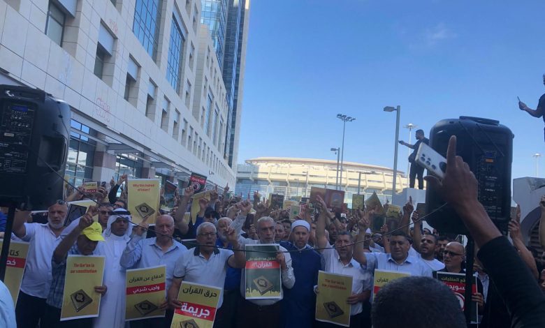 تنديدا بإحراق سويدي للمصحف الشريف: المئات يتظاهرون أمام السفارة السويدية في تل أبيب انتصارا لكتاب الله