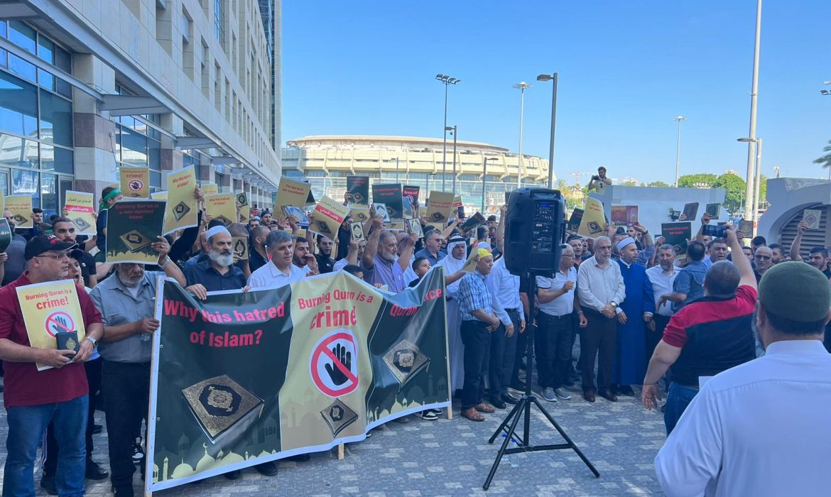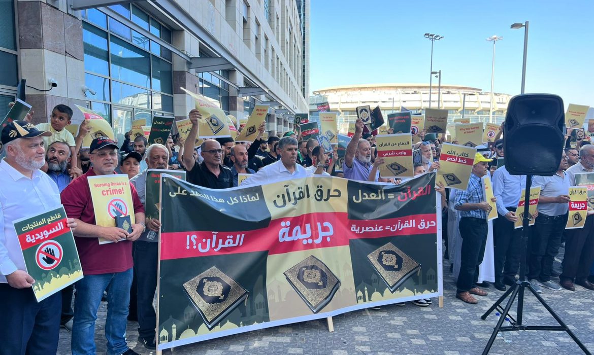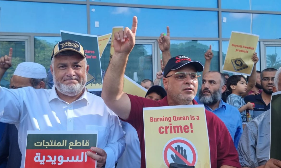 بدعوة اتحاد الأئمة والدعاة في الداخل الفلسطيني، تظاهر المئات من أبناء الداخل الفلسطيني مساء اليوم الاثنين، قبالة السفارة السويدية في مدينة تل أبيب، تنديدا بإحراق المصحف الشريف على يد مواطني سويدي، أول أيام عيد الأضحى المبارك.