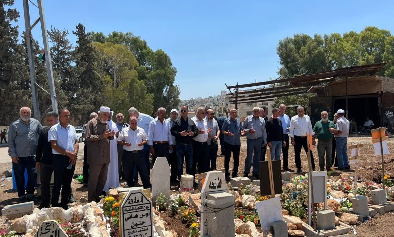 واستمرت الزيارة ضمن جولة مرورا بأزقة المخيم وزيارة الأهالي والعائلات المتضررة والحديث معهم، وصولا إلى مقبرة الشهداء الجديدة والتي يرقد فيها شهداء العدوان الأخير.