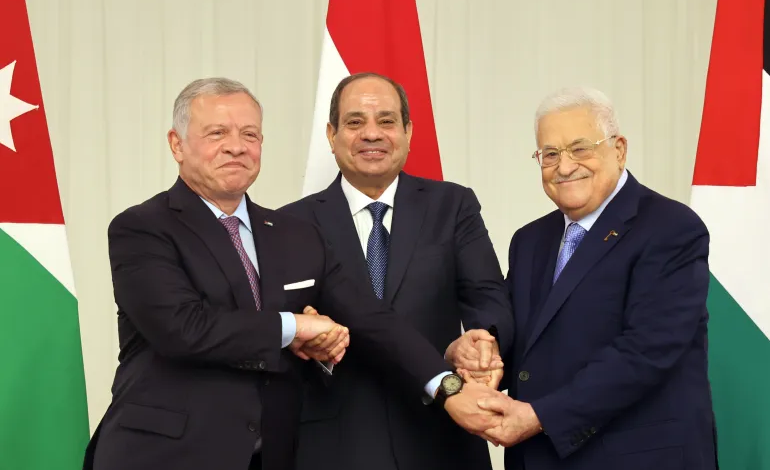 دعت قمة ثلاثية في مدينة العلمين المصرية، أمس الاثنين، إلى ضرورة التزام المؤسسة الإسرائيلية بتعهداتها الدولية.