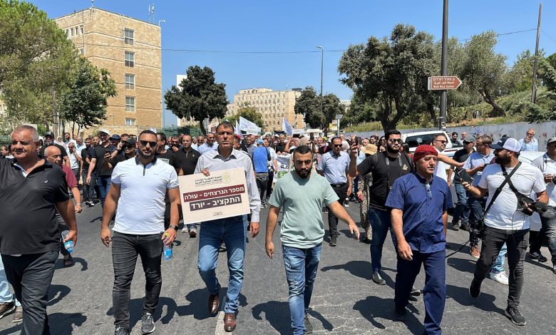 للمطالبة بتحويل الميزانيات ومحاربة الجريمة.. رؤساء السلطات المحلية يتظاهرون أمام مكتب رئيس الحكومة الإسرائيلية في القدس