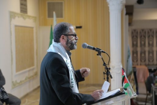 وطالب علماء الأمة بالتحرك وعدم الاكتفاء بالخطب والشعارات، وحثّهم على تحريك الشعوب العربية والاسلامية نصرة للقدس والأقصى، وقال: “القدس ليست لنا وحدنا، بل هي لكل عالمنا العربي والاسلامي، وحق علينا ان نساند اهلنا في القدس وان نساند المسجد الاقصى، على العلماء ان يكونوا على قدر المسؤولية عليهم بذل الجهود، نحن على يقين ان شعوبنا العربية والاسلامية مع القدس والاقصى رغم تآمر الحكام، نقولها بكل يقين إن الأقصى سيحرر من الاحتلال، لكن هذا بحاجة إلى أن نكون على قدر المسؤولية، حتى تنطلق مسيرة التحرير”.