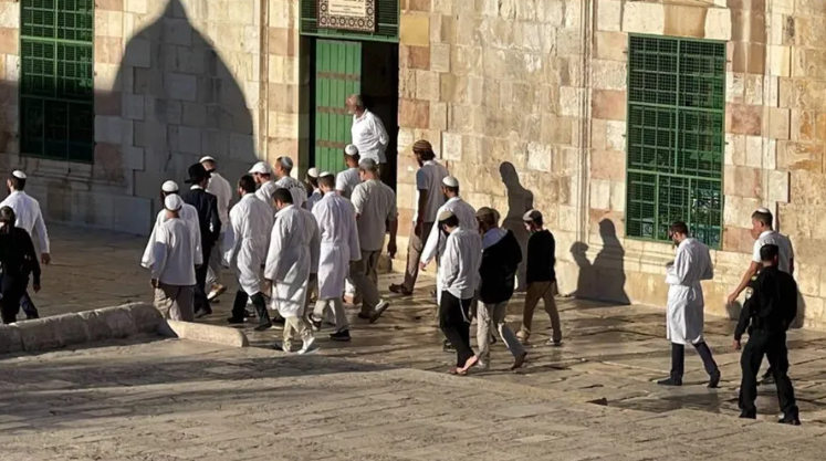 وشهدت الأيام الماضية التي تتزامن مع فترة أعياد يهودية، تصاعدا كبيرا في انتهاك حرمة المسجد الأقصى المبارك، وتحويل القدس المحتلة لثكنة عسكرية، وقيام المستوطنين المقتحمين للأقصى بأداء صلوات تلمودية، واقتحامهم الأقصى بلباس الكهنة والتجول في باحاته،