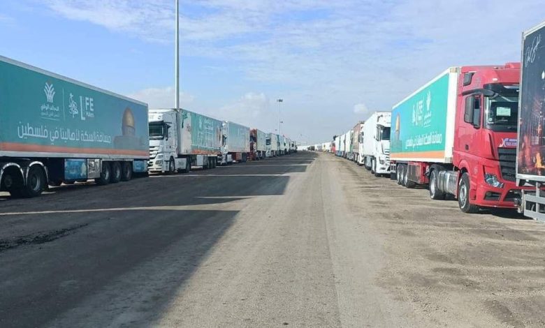 بدء دخول أول قافلة لشاحنات المساعدة عبر معبر رفح نحو قطاع غزة