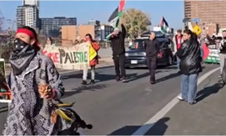تقدم السكان الأصليون في ولاية مينيابوليس الأمريكية، مظاهرة حاشدة داعمة لفلسطين ضد العدوان الإسرائيلي على قطاع غزة.