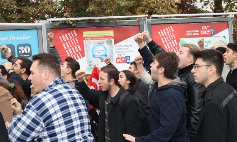 وتجمعت المظاهرة التي نظمها اتحاد الشباب التركي، بالقرب من مبنى وزارة الخارجية التركية.