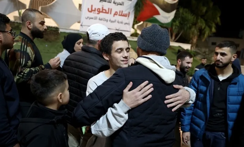 وأظهر مقاطع فيديو لحظة الإفراج عن الأسرى الفلسطينيين بموجب صفقة التبادل التي تم التوصل إليها بين حركة حماس والاحتلال الإسرائيلي ودخلت حيز التنفيذ أول من أمس الجمعة. وكان من بين المفرج عنهم الفتى عمر الشويكي من بلدة سلوان بالقدس.