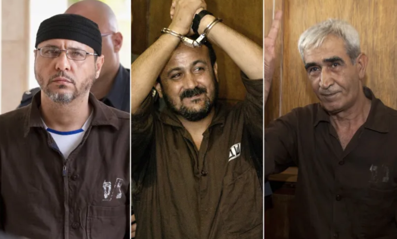 وأوضحت صحيفة “يديعوت أحرونوت” أن أولئك الثلاثة؛ هم: عضو اللجنة المركزية بحركة التحرير الوطني الفلسطيني (فتح) مروان البرغوثي، وأمين عام الجبهة الشعبية لتحرير فلسطين أحمد سعدات، والقيادي في حركة حماس عبد الله البرغوثي، وفق ما نقلته وكالة الأناضول.