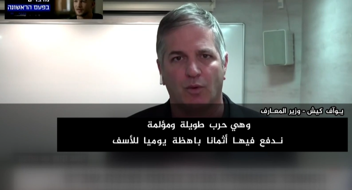 ويقول وزير التعليم الإسرائيلي يوآف كيش إن “ما يحدث ليس حملة عسكرية، بل حربا طويلة ومؤلمة ندفع فيها أثمانا باهظة يوميا للأسف”، مؤكدا أنها “حرب وجودية بالنسبة لإسرائيل”.