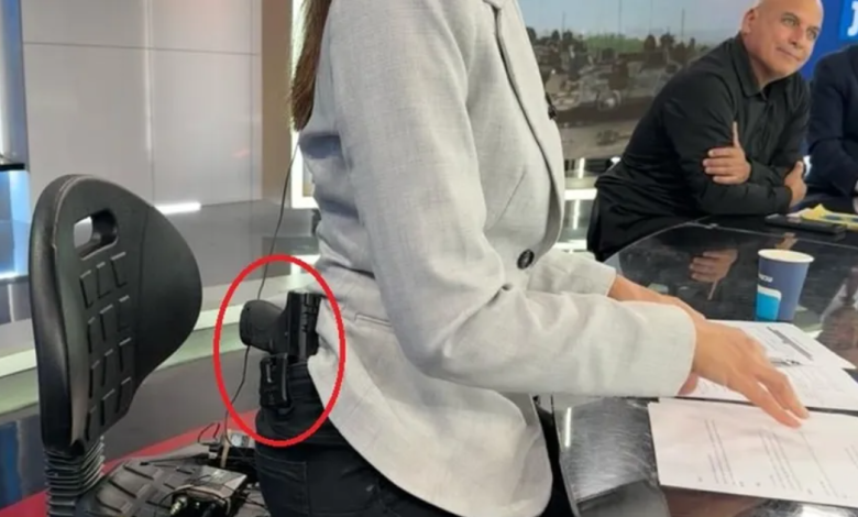 داخل أستوديو الأخبار… مذيعة إسرائيلي تضع مسدسًا على خصرها