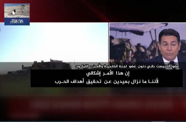 وأقر داني دانون- وهو عضو الكنيست وعضو لجنة الخارجية والأمن في حزب الليكود– بأن الإسرائيليين بعيدون عن تحقيق أهداف الحرب، وقال “إذا لم ينجح رئيس الحكومة والمجلس الوزراء المصغر في تحقيق إنجازات في أهداف الحرب، فيجب أن تتحقق هذه الإنجازات عبر قيادة بديلة”.