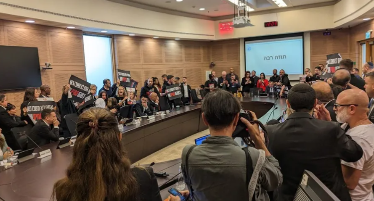 اقتحمت عائلات أسرى اسرائيليين في قطاع غزة، اجتماع لجنة المالية في الكنيست الإسرائيلية، اليوم الاثنين، للاحتجاج على عدم إبرام صفقة لإطلاق سراحهم من غزة.