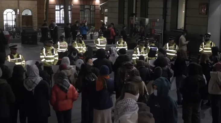 طلاب كلية #لندن للاقتصاديات ( من أعرق الجامعات في #بريطانيا )، يتظاهرون خلال زيارة رئيس الوزراء #بشر_الخصاونة الذي جاء ليُلقي محاضرة عن الصراع في الشرق الأوسط ..