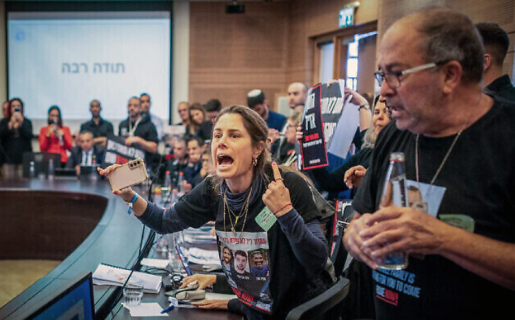 ونقلت القناة 13 مشهد اقتحام بعض ذوي الأسرى اجتماع رئيس الحكومة بنيامين نتنياهو مع لجنة المالية في الكنيست، حيث صرخ جلعاد كورنجولد والد أحد الأسرى مستنكرا “لن تجلسوا هنا بينما أطفالنا يموتون هناك، إذا اعتقدتم أن شخصا ما يمكنه إخراجنا”.