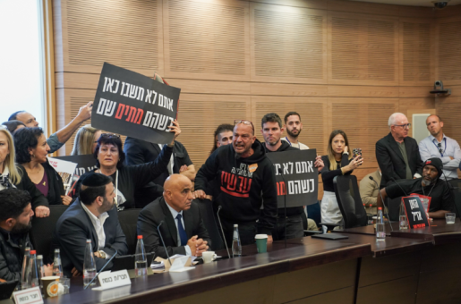 وهدد أحد المقتحمين أعضاء الكنيست بالقول “أتعهد لكل ممثلي الجمهور بأني لن أغادر وسأطاردكم واحدا واحدا حتى تتعاونوا معنا من أجل إعادة الجميع الآن”.