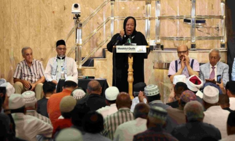 ووجّهت الوزيرة باندور دعوة للفلسطينيين بمواصلة النضال من أجل نيل حقوقهم، وأن “الدموع والآلام” ستجعلهم أقوى، مؤكدة أن شعب جنوب أفريقيا سيقف إلى جانبهم مثلما وقفوا في صفّه خلال الكفاح ضد الفصل العنصري، وختمت حديثها بالقول: “الحرية لفلسطين”.