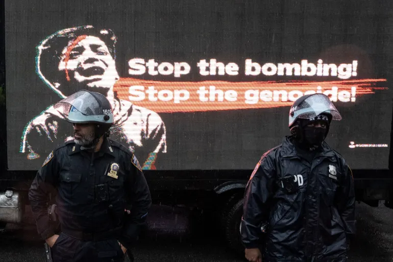 واتهم المتظاهرون إدارة الرئيس الأميركي جو بايدن ومسؤولي ولاية نيويورك وممثليها في الكونغرس بتمويل ما وصفوه بالإبادة الجماعية في غزة.