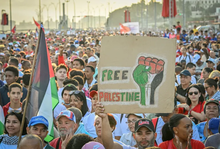 وفي كوبا، تظاهر الآلاف في العاصمة هافانا تضامنا مع الشعب الفلسطيني بمشاركة كبار المسؤولين يتقدمهم رئيس البلاد ميغيل دياز كانيل، وجميع أعضاء مجلس الوزراء.