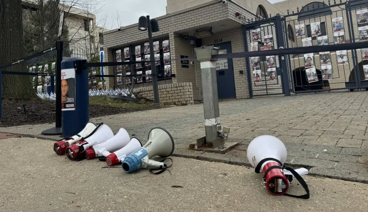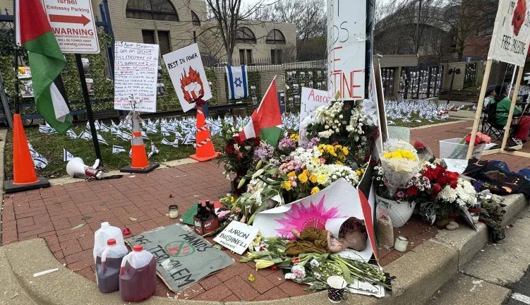 أعلام فلسطين ترفرف حول السفارة الإسرائيلية في واشنطن