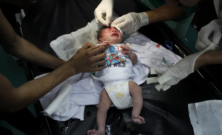 على ضوء هاتف محمول.. أطباء بغزة يسعفون رضيعة نجت من غارة إسرائيلية