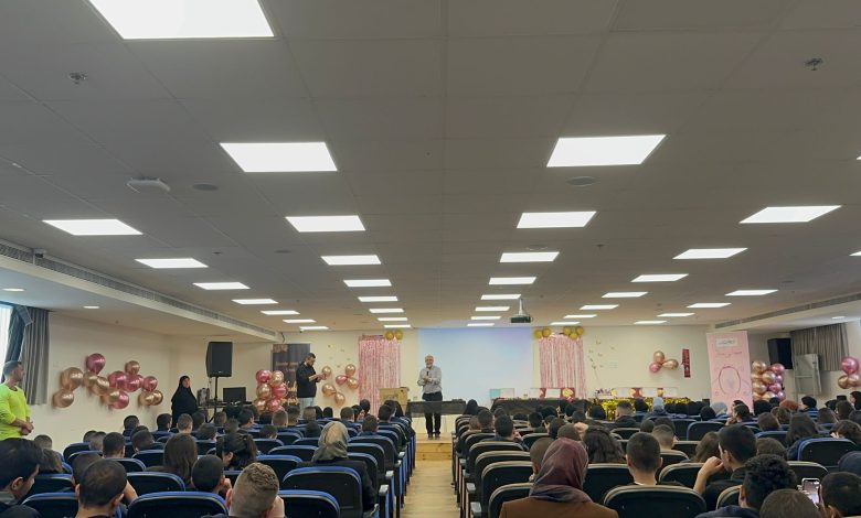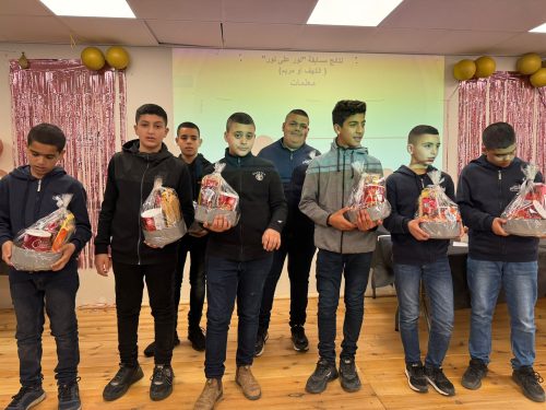 وفي ختام الاحتفال قام مدير المدرسة بتكريم ثلة من الطلاب والمعلمات الذين شاركوا في مسابقة ” نور على نور” التي تم تنسيقها بالتعاون مع جمعية بصائر الخير القرآنية وقد بلغ عدد المشاركين في حفظ سور من القرآن 20 طالبا و من بين المشاركين في المسابقة 4 مربيات بمبادرة فريدة من نوعها، وقد فازت بالمرتبة الأولى الطالبة المميزة نور كبها من الصف الثامن 5