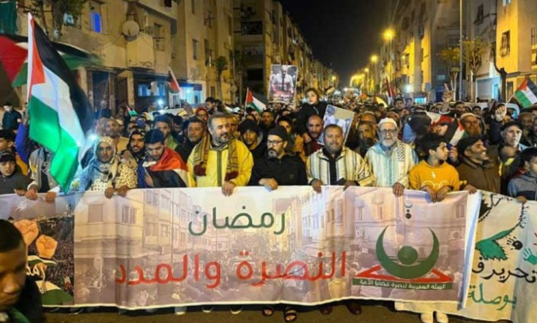 شارك آلاف المغاربة بعدة مدن في المملكة، في مظاهرات ليلية للمطالبة بتوقيف تجويع سكان غزة وإيصال المساعدات للقطاع.