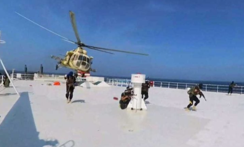 ولفتت “أمبري” إلى أنها اطلعت على “لقطات ثابتة لثلاثة أفراد على الأقل ينزلون من مروحية إلى ما يبدو أنها سفينة شحن”، لافتة إلى أن هذا الأسلوب “استُخدم سابقاً من البحرية التابعة للحرس الثوري الإيراني“.