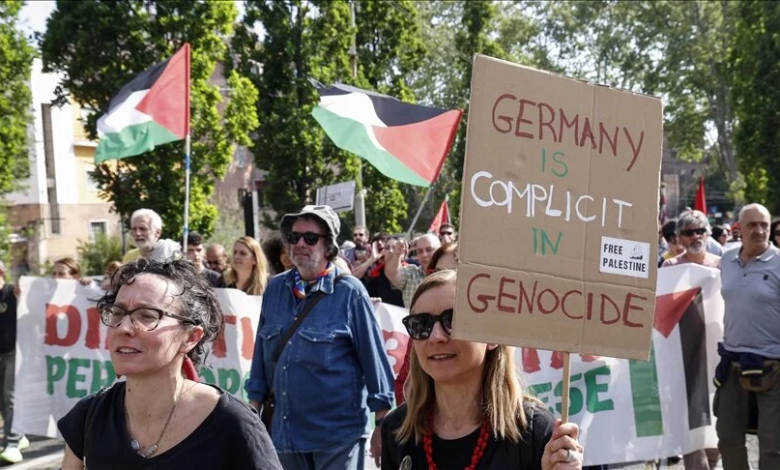 وحمل المتظاهرون الأعلام الفلسطينية ولافتات كتب عليها “أوقفوا الإبادة الجماعية” و”الصهيونية إرهاب” و”الولايات المتحدة وأوروبا شركاء إسرائيل في الإبادة الجماعية”.