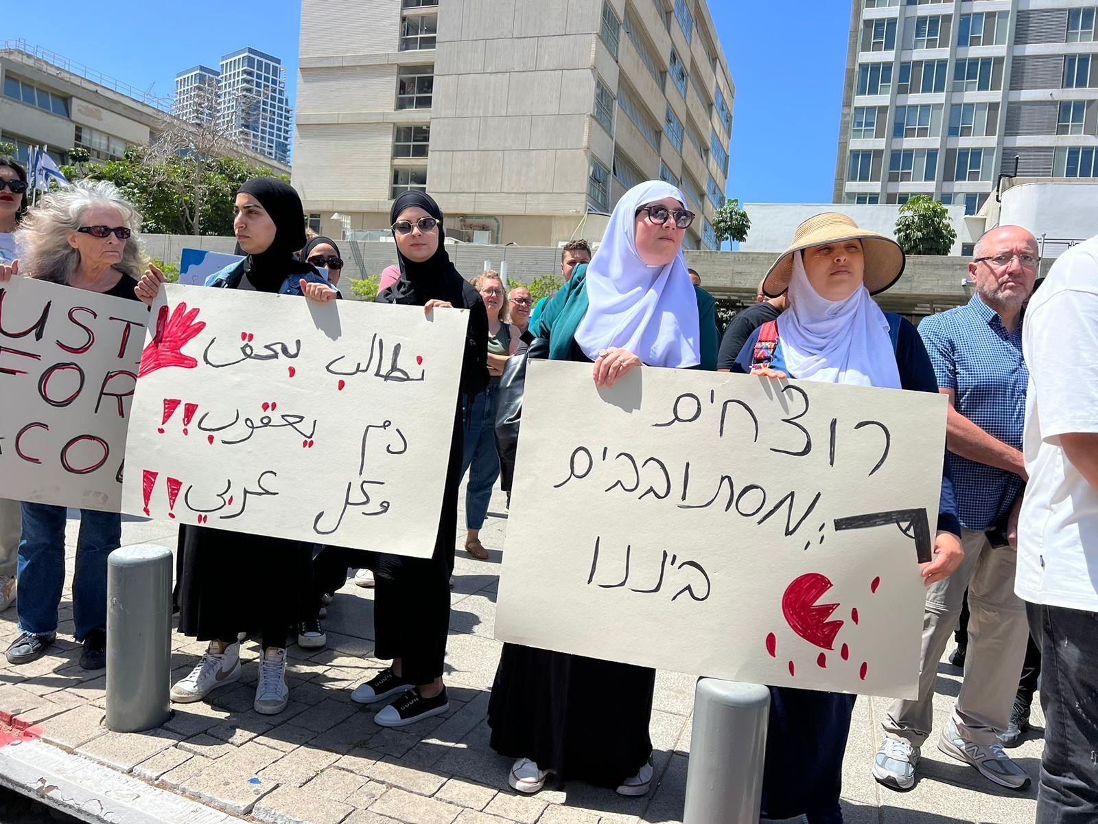 ورفع المشاركون في الوقفة اللافتات التي تطالب بإنزال أشد العقوبات على الشرطي القاتل، وتمديد اعتقاله، وكتب على بعض اللافتات “الدم العربي مش رخيص” و”دم يعقوب دم كل يافاوي” و”دم يعقوب غالي علينا”.