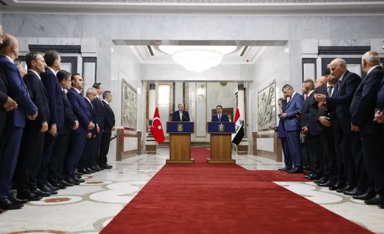 قال الرئيس التركي رجب طيب أردوغان إن الاتفاقيات التي وقعتها تركيا أمس الاثنين مع العراق ستشكل “خريطة طريق قوية”، ونقطة تحول في مسار العلاقات بين البلدين، في حين أعلن رئيس الوزراء العراقي محمد شياع السوداني عن توقيع اتفاق إطار إستراتيجي بين البلدين.