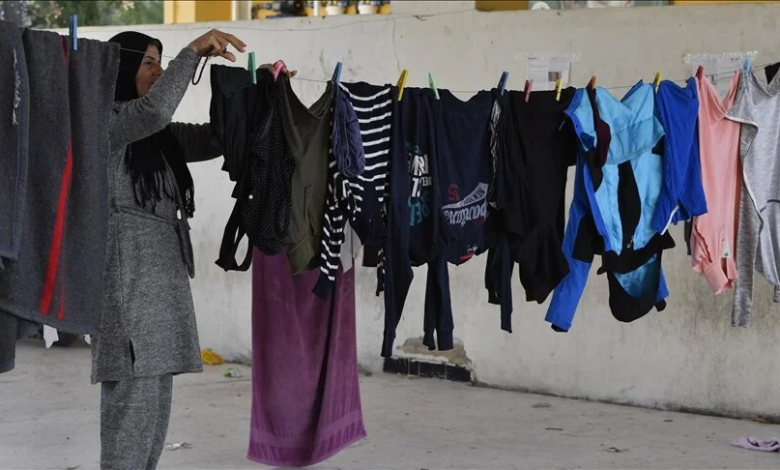 وجدت السرسك، في غسل الملابس والأواني للنازحين فرصة لجلب دخل لأسرتها التي تعاني ظروفًا مأساوية ناتجة عن الحرب.
