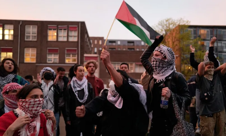 أقام طلاب مخيما في حرم جامعة أمستردام، وطالبوا الجامعة بقطع كل علاقاتها مع إسرائيل على خلفية حربها في غزة.