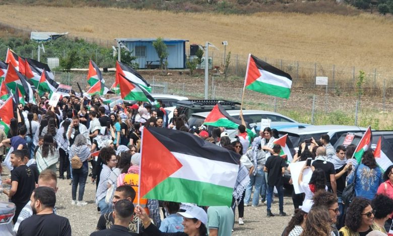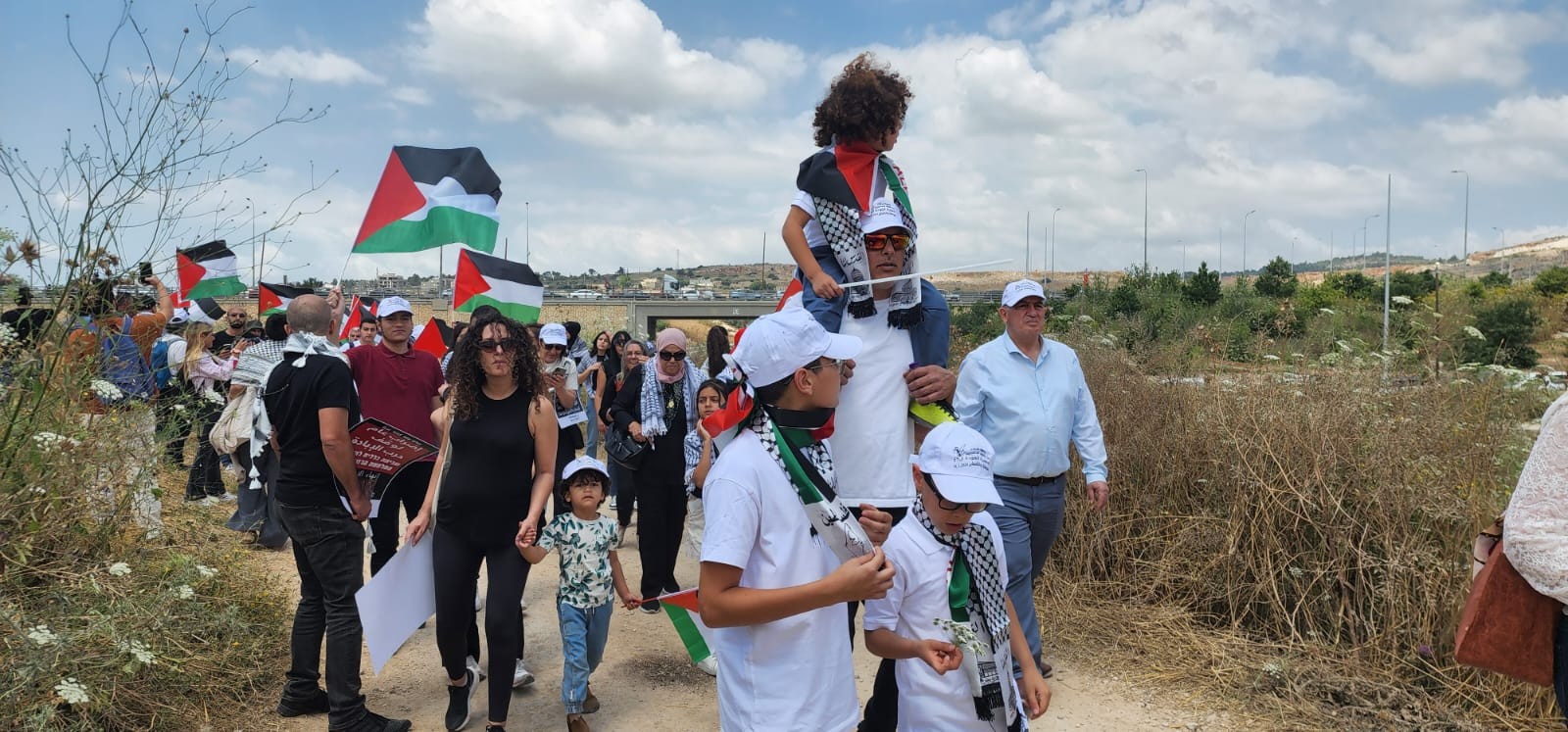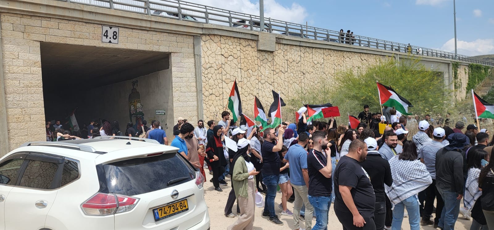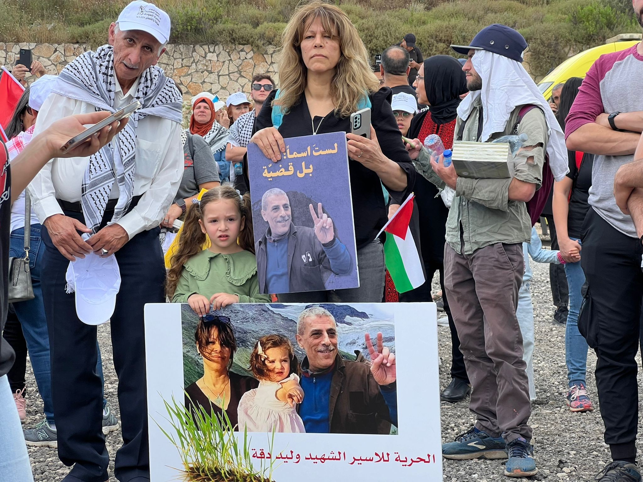 كما رفعوا لافتات حملت أسماء القرى الفلسطينية المهجرة وصور الشهيد الأسير وليد دقة ابن مدينة باقة الغربية، وطالبوا بتحرير جثمانه لمواراته الثرى.