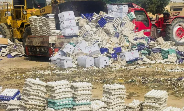 وقال مسؤولون محليون من وزارة التموين المصرية إن بعض المواد الغذائية تباع بأسعار منخفضة في السوق المحلية بشمال سيناء مما أدى إلى مصادرة كميات من البيض الفاسد.