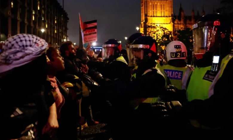 فقد تظاهر آلاف الداعمين لفلسطين في شوارع العاصمة البريطانية لندن الثلاثاء، تنديدا بمجازر الاحتلال الإسرائيلي المستمرة في مدينة رفح.