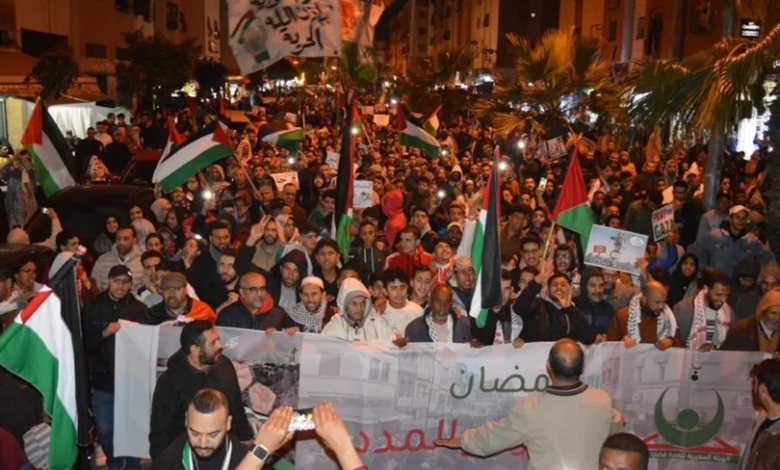 عاشت عدد من المدن المغربية، أمس الاثنين، على إيقاع عدّة مظاهرات حاشدة، ليلية، للتأكيد على المطالبة بالضغط على المؤسسة الإسرائيلية لوقف الحرب المستمرة على كامل قطاع غزة المحاصر، منذ 7 تشرين الأول/ أكتوبر الماضي.