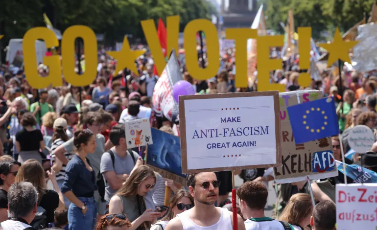 تظاهر عشرات الآلاف في ألمانيا أمس السبت عشية الانتخابات الأوروبية، تنديدا باليمين المتطرف ودفاعا عن الديمقراطية، وذلك قبل يوم من تصويت ألمانيا في انتخابات البرلمان الأوروبي.