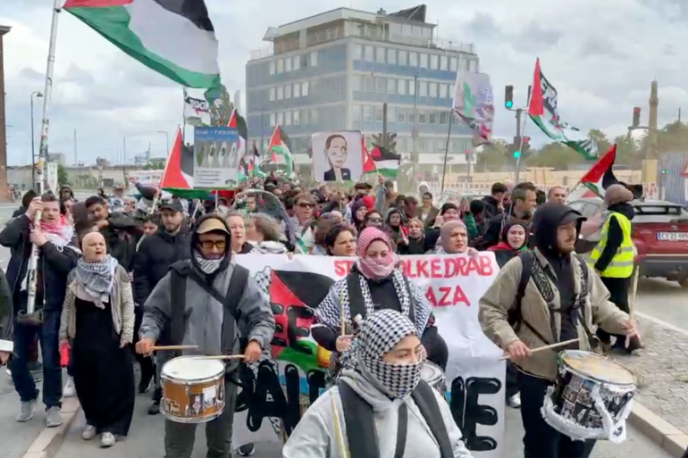 وفي مدينة مالمو تظاهر الآلاف دعما لغزة وفلسطين واحتجاجا على استمرار الحرب على قطاع غزة.