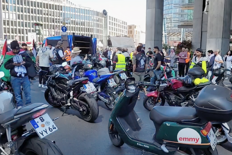 وخرجت في برلين مسيرة بالسيارات والدراجات النارية، وأخرى راجلة، للمطالبة بوقف فوري لإطلاق النار في غزة، بينما شجب متظاهرون آخرون موقف الحكومة الألمانية المساند لإسرائيل، وطالبوا بوقف جميع المساعدات لها.
