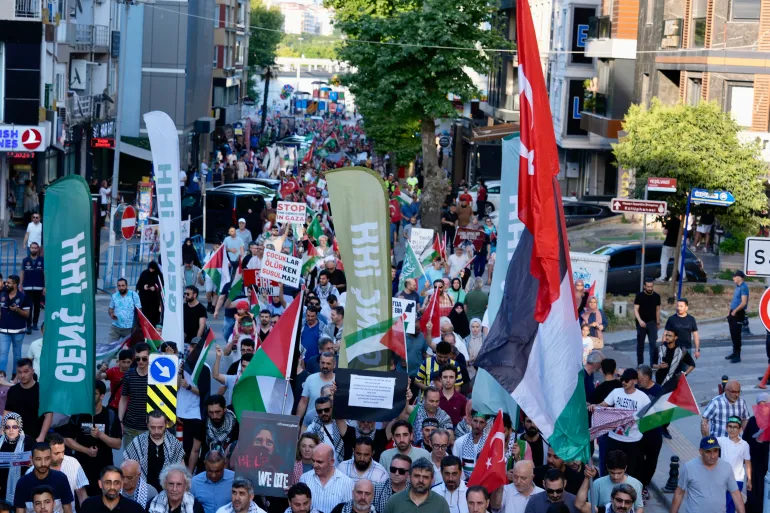 وفي منطقة أسكودار بمدينة إسطنبول التركية، خرجت مظاهرة دعما لغزة ورفضا لاستمرار الحرب الإسرائيلية. وحمل المتظاهرون وبينهم آلاف النساء أعلام فلسطين ويافطات ضخمة تندد بجرائم الاحتلال ضد المدنيين وتطالب بوقف الحرب فورا وإنهاء ما سموها حرب الإبادة.