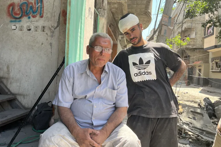 عبد الرحمن الطهراوي (يمين) ووالده خليل نجوا بأعجوبة من مجزرة النصيرات